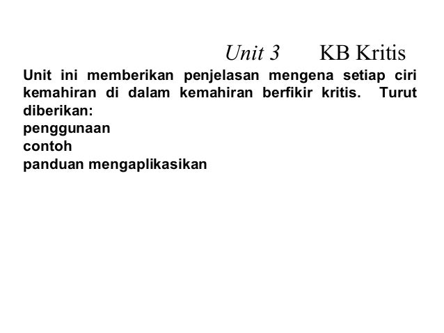 Pelaksanaan kemahiran berfikir secara kritis dan. Konsep kemahiran berfikir secara kritis & kreatif (kbkk) kemahiran berfikir ini merupakan satu daripada elemen utama dalam mata pelajaran kemahiran generik kemahiran generik adalah kemahiran umum, kualiti, kebolehan dan trait yang harus dikuasai oleh seseorang untuk berjaya. Kreatif menjana idea menghubung kaitkan membuat inferens meramalkan membuat hipotesis mensintesiskan mengitlak kema kemahi hiran ran berfik berfikir ir secara secara kritis kritis merupa merupaka kan n kece kecekap kapan an dan keupaya keupayaan an. Kritis dan kreatif juga berkaitan dengan problem solver. Kemahiran berfikir kritis, kreatif dan aras tinggi (bbb3105 k3/3).