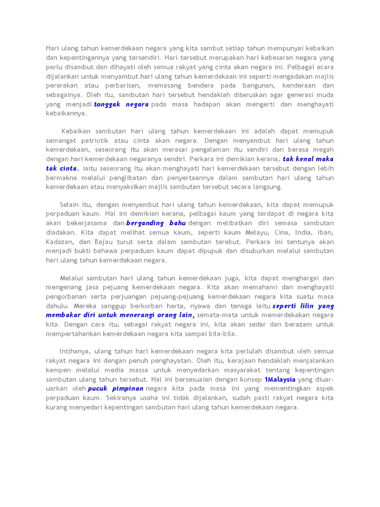 Related : Kepentingan Sambutan Hari Kemerdekaan / Kebaikan sambutan hari ulang tahun kemerdekaan ini adalah dapat memupuk semangat patriotik atau cinta akan negara..