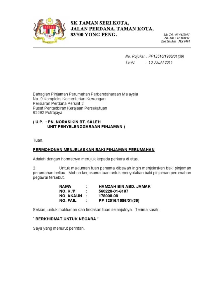 Surat Permohonan Penyata Baki Hutang Pinjaman Untuk Tujuan Penyelesaian Penuh Zaimah Binti Mamat from imgv2-2-f.scribdassets.com ¢ memastikan waris memberitahu bahagian pinjaman perumahan akan kematian peminjam/penerima biaya dan mengemukakan salinan sijil kematian yang telah. Rm 1.00 bagi setiap rm 1,000.00. Bahagian pinjaman perumahan perbendaharaan malaysia. 5 tahun 2011 syarat dan tatacara skim pinjaman perumahan perbendaharaan malaysia berkuatkuasa 1 januari 2011. La ni tengah tunggu surat tawaran rasmi sahaja dari perbendaharaan malaysia. ڤربنداهاراءن) terletak di bawah kementerian kewangan dan objektif penubuhannya adalah untuk menggubal, melaksanakan dan memastikan dasar fiskal dan kewangan bagi merangsang pertumbuhan ekonomi secara berterusan. Sebelum kita bicara cara memohon, mari kita tengok apakah. No,9 persiaran perdana presint 2, pusat pentadbiran kerajaan peresekutuan